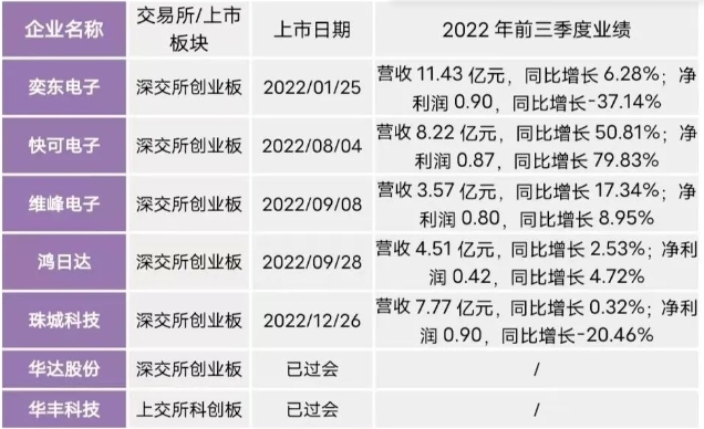回顧2022全年,在連接器行業(yè)中,先后有5家連接器企業(yè)順利上市,分別是奕東電子、快可電子、維峰電子、鴻日達、珠城科技。此外,華達股份、華豐科技也分別在深交所創(chuàng)業(yè)板、上交所科創(chuàng)板成功過會。