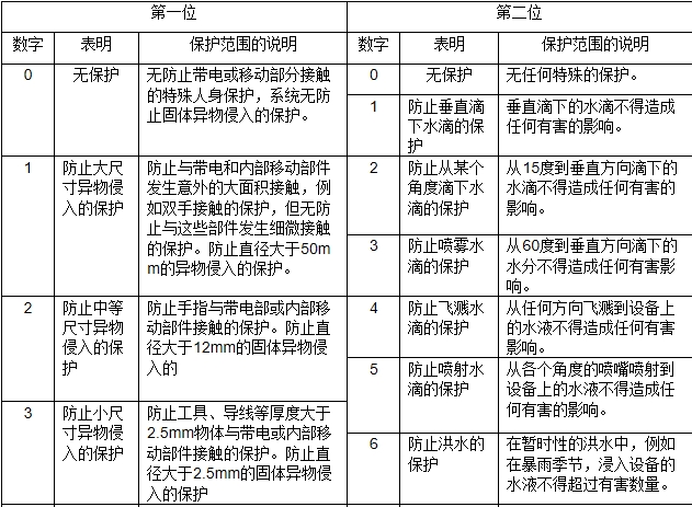 防護等級是由Ingress Protection縮寫表示,該縮寫由兩個固定識別字母“IP”和兩個表示防護程度的特征數(shù)字組成,例如:IP68——表示防護等級的最高級別。